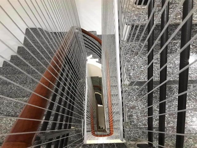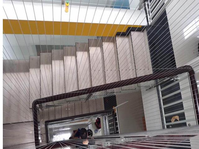 - Sợi cáp inox có đường kính 2.5mm và 3.00mm có khả năng chịu lực và độ bền cao. Chịu được lực va đập lên tới 90N nên tránh vật và người văng ra ngoài cầu thang khi di chuyển.